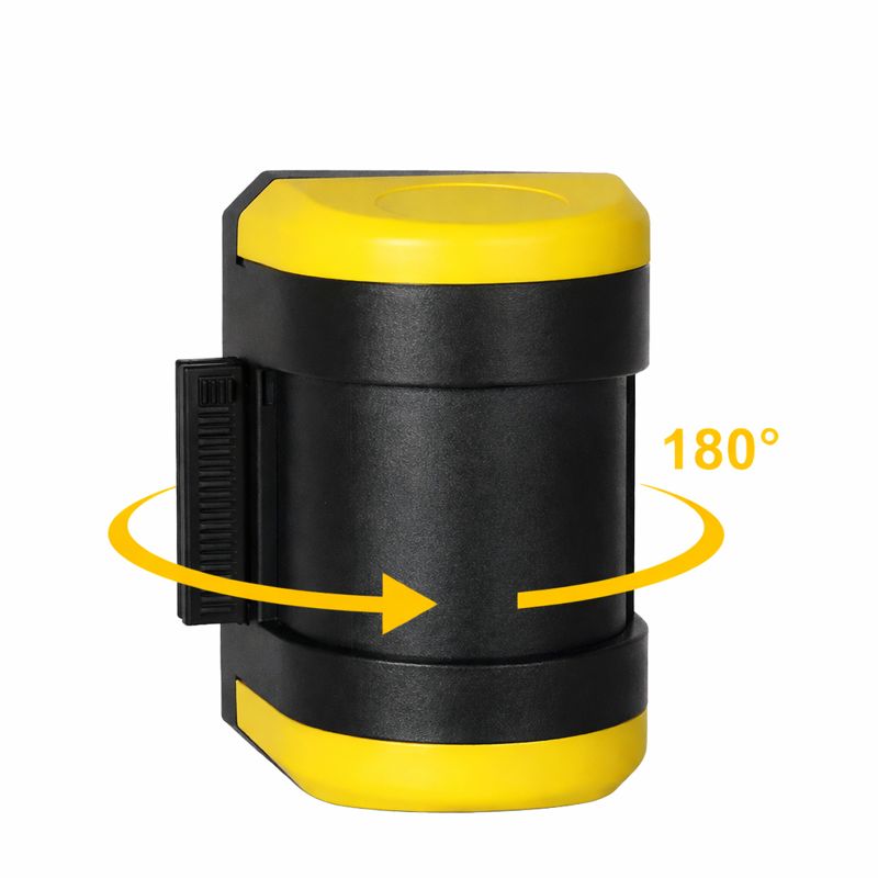 Rotating wall unit with a self-retracting belt offers a space-saving and flexible solution for the temporary separation of safety areas. Ideal for fast and efficient use in environments where floor space must remain free.