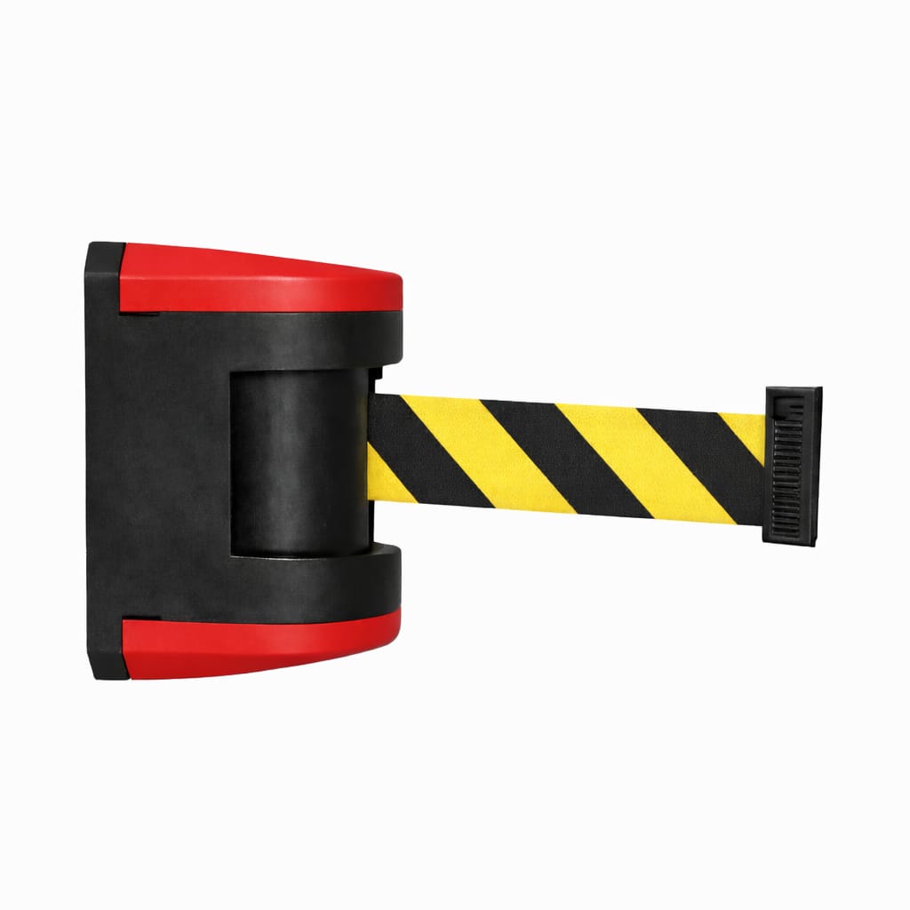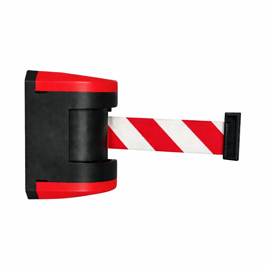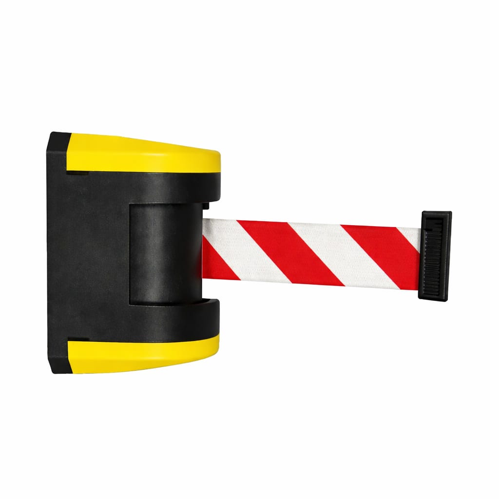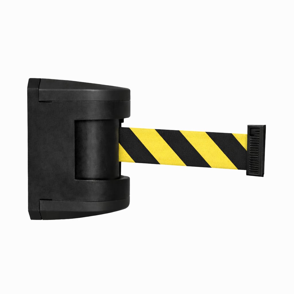 Wall mounting enables efficient use of the available space while allowing fast and flexible access and area management. The wall unit is equipped as standard with a patented braking system that ensures controlled belt retraction and automatic locking of the belt end, increasing safety during daily operation.