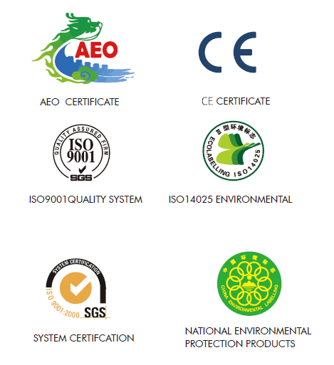 Both the products and the materials used comply with three international environmental protection standards, and each product undergoes