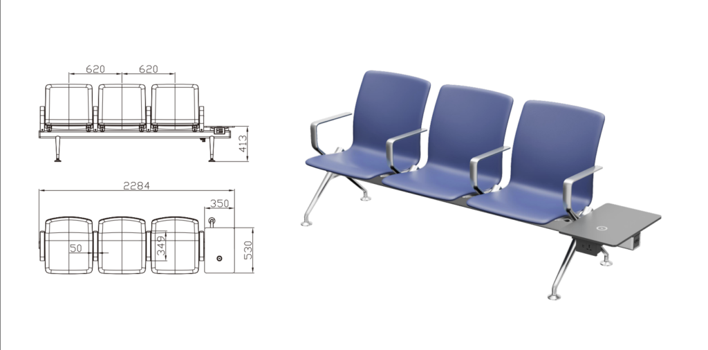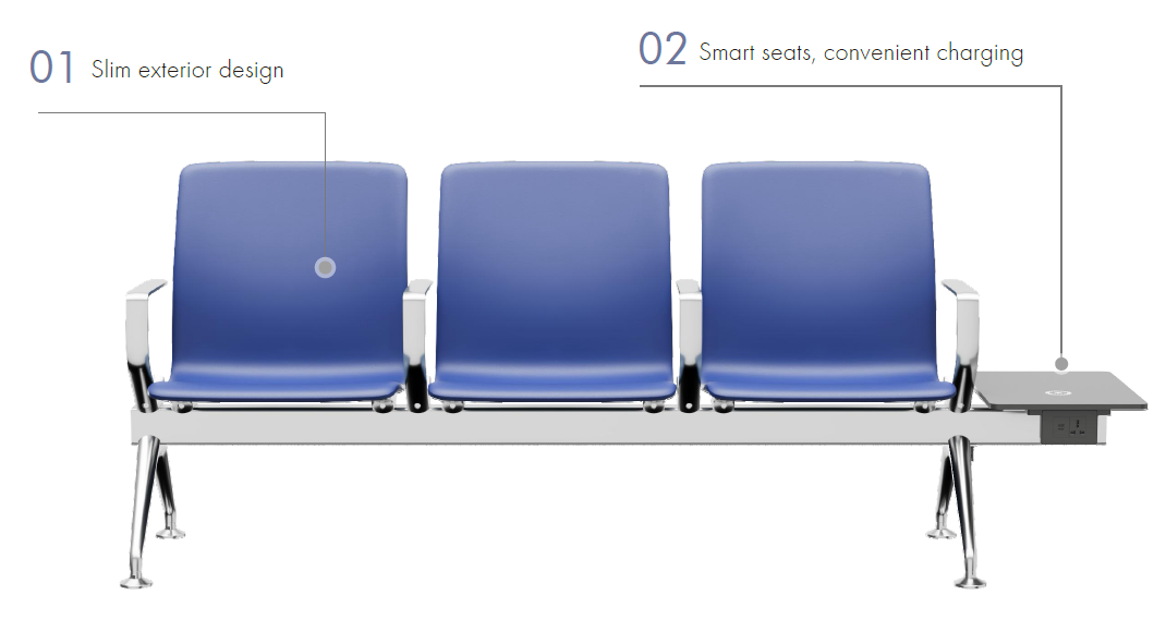 The Beam Seat Arm Rests become a technological hub, thanks to the electrical sockets and USB recharge points allowing