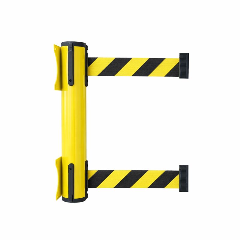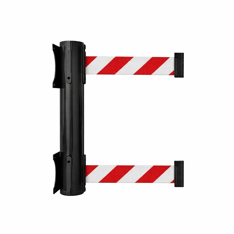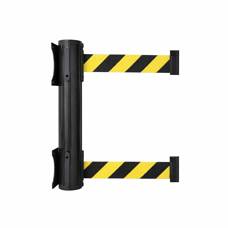 Wall mounting enables efficient use of the available space while allowing fast and flexible access and area management. The wall unit is equipped as standard with a patented braking system that ensures controlled retraction of both belts as well as automatic locking of the belt ends, increasing safety during daily operation.