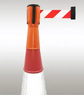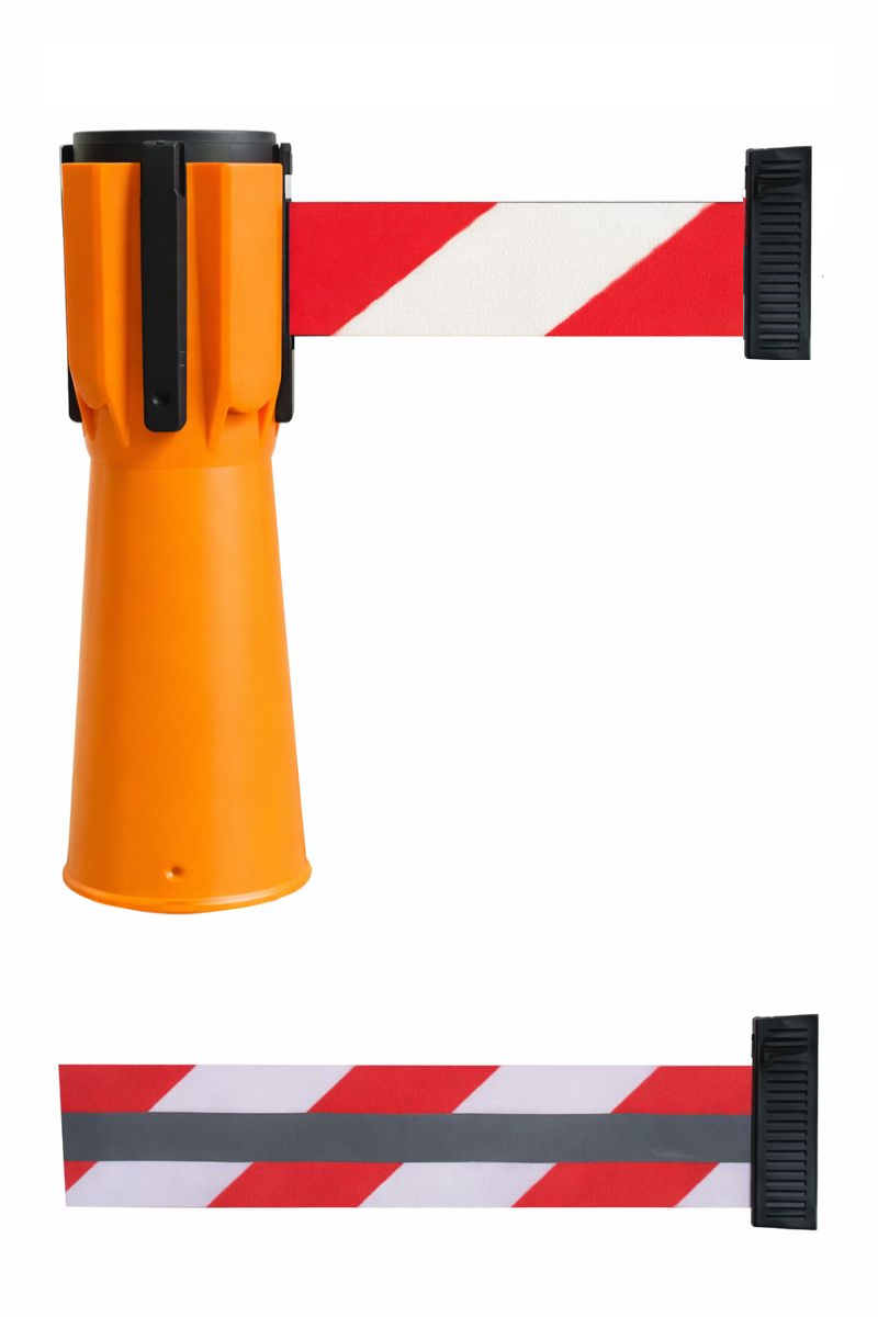 Zintegrowany mechanizm samozwijający zapewnia kontrolowane i bezpieczne zwijanie taśmy, co ułatwia codzienną obsługę i ogranicza ryzyko uszkodzeń. Wyraźna taśma ostrzegawcza zwiększa widoczność wygrodzeń i poprawia bezpieczeństwo pracowników oraz osób postronnych.