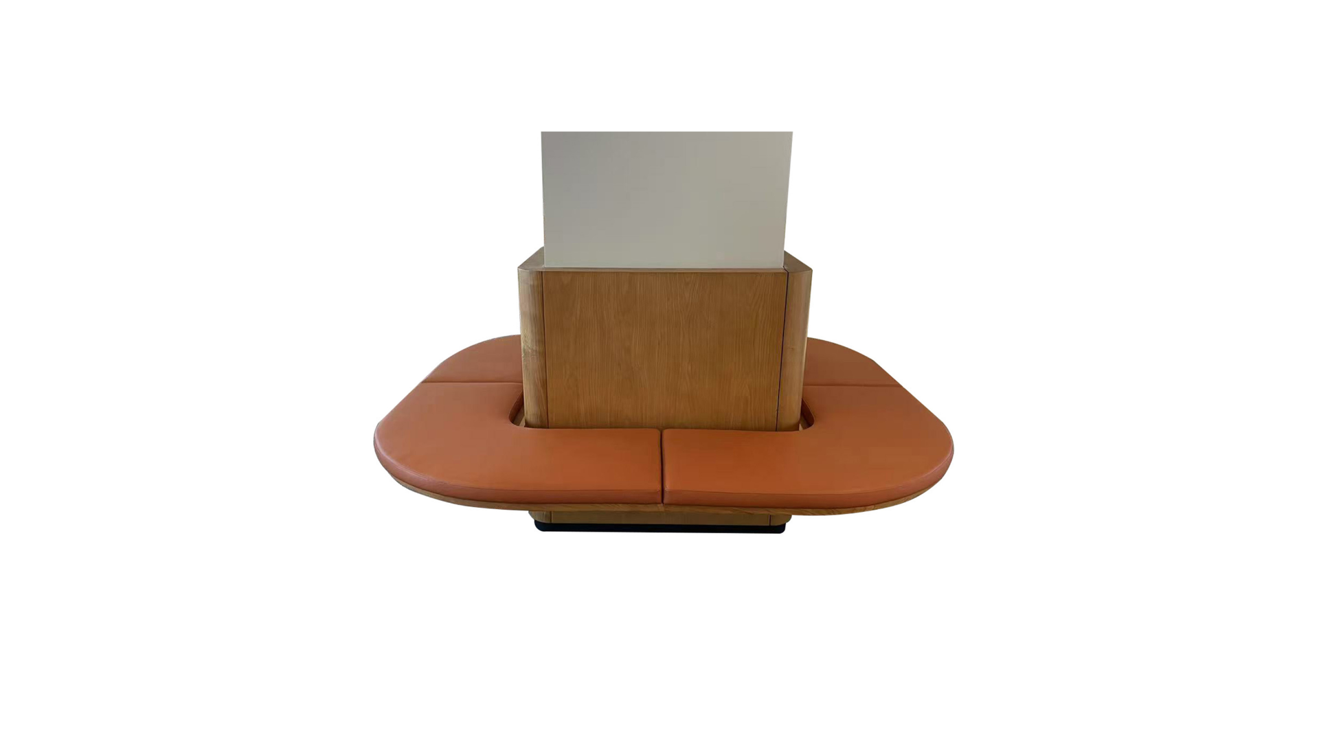 Sofa modułowa SJ-AP27 łączy nowoczesną formę z eleganckimi materiałami wykończeniowymi. Fornir z drewna jesionowego, skóra premium oraz podstawa z kutego żelaza tworzą trwałą i reprezentacyjną konstrukcję idealną do prestiżowych przestrzeni.